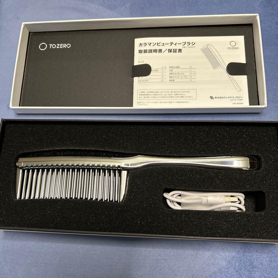 【商品名】icoelle イコエル超音波リペアコーム【商品説明】髪と頭皮のプロフェッショナル、ヘアサロン「apish」監修【イコエル超音波リペアコーム】は、自宅で手軽にサロン級のケアを叶えるアイテムです。注目したのは、プロの現場でも使われる「超音波トリートメント」。独自の超音波振動がトリートメント剤を微細化し、髪の内部までしっかりと浸透をサポートします。搭載された2つのモードで、髪のうるおい補給サポートと頭皮の汚れケアの両方に対応。使い方は簡単、ただ梳かすだけ。先端には球状加工、表面には鏡面仕上げを施し、髪への摩擦ダメージをやさしく軽減。コードレス&軽量で持ち運びにも便利です。【セット内容】本体×1、充電用ケーブル×1、取扱説明書(保証書付き)【本体サイズ】約W52×D247×H20mm/約108g【材質】【コーム】ステンレス【ハンドル】ABS樹脂、シリコーン【商品仕様】[電源]充電式(リチウムイオン電池内蔵 500mAh/3.7V)[定格消費電力]最大2W[充電時間]約180分(※充電時間は付属の充電用ケーブルで充電した際の目安です)[電池持続時間]約75分 (1モード5分を15回使用)※メーカー推奨の使用方法に準じます。実際の時間は、使用環境や使用状況により異なります。写真をとるために箱を開けましたが、新品未使用品です(^使用する機会がないため出品します。